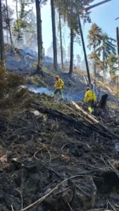 În acest moment, incendiul este localizat dar este influențat foarte mult de condițiile meteo.