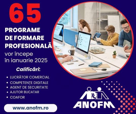 Pentru cei interesați de dezvoltarea profesională, ANOFM pune la dispoziție 65 de programe variate. Printre cele mai căutate calificări, cu locuri generoase disponibile, se numără: