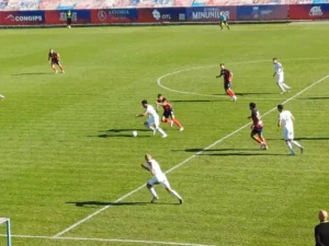 În minutul 55, Adrian Gîdea a şutat în blocaj, faza a continuat, mingea a fost trimisă din nou în careul ciucanilor, către Gelu Gitye, dar a ieşit bine portarul Mate Simon.