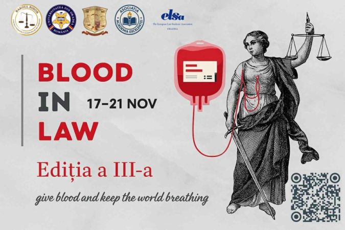 Facultatea de Drept din Oradea, alături de ELSA Oradea și Baroul Bihor, organizează în perioada 17–21 noiembrie 2025 cea de-a treia ediție a campaniei de donare de sânge „BLOOD (IN) LAW(S)”. Evenimentul se desfășoară în parteneriat cu Centrul de Transfuzie Sanguină Oradea și își propune să mobilizeze lumea juridică, universitară și locală pentru a face un gest de solidaritate și responsabilitate.