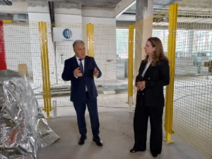 Următoarea destinație a vizitei fulger a fost șantierul Centrului de Transfer Tehnologic. Pe lângă laboratoare, servere de mare putere, utilaje unicat la nivel național, din care doar unul costă peste un milion de euro, zona va avea, așa cum a explicat rectorul Universității din Oradea, și un spațiu dedicat business-ului.