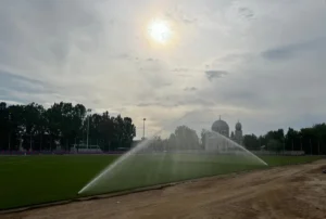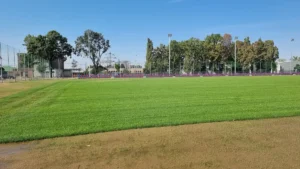 Suprafața de joc a terenului de fotbal a fost completată cu un strat de pământ vegetal (30 cm) pentru ridicarea nivelului suprafeței de joc și a fost înierbată. Terenul are o suprafață de 6.423 mp, având o dimensiune de 62/103,6 m. De menționat că terenul are și o instalație de irigare cu aspersoare automate.