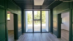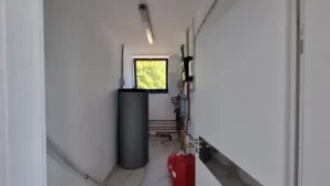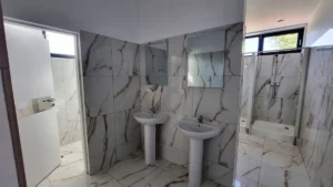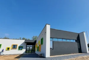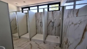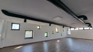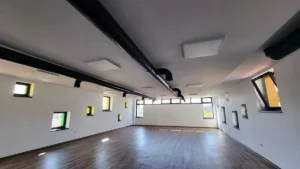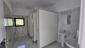 Corpul de clădire cu destinația de vestiare și săli de fitness are o suprafață utilă de 265 mp și include: o sală de fitness cu o capacitate de 50 locuri, 3 vestiare (2 pentru echipe și unul pentru arbitri), grup sanitar, zonă de dușuri, depozit.