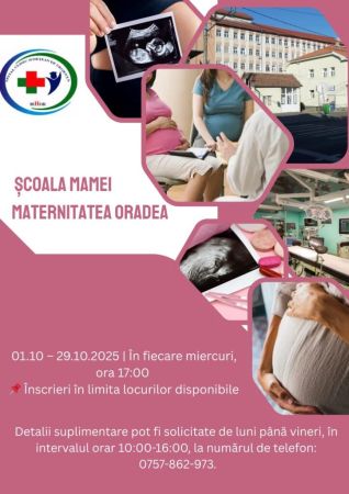 Maternitatea din cadrul Spitalului Clinic Județean de Urgență (SCJU) Bihor organizează, în luna octombrie 2025, programul „Școala Mamei”. Practic, vor fi o serie de întâlniri dedicate viitoarelor mămici și viitorilor tătici.