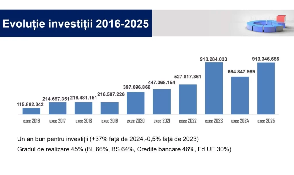 Comparativ cu anul precedent, investițiile realizate în 2025 au crescut cu peste 37%.