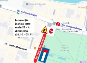De asemenea, intersecția străzii Independenței cu Parcul 1 Decembrie (lângă fostul magazin Făt Frumos) va fi restricționată pe timp de noapte, între orele 23 și 4 dimineața, din seara de joi, 31 octombrie până în noaptea de sâmbătă spre duminică, 2 – 3 noiembrie, pentru lucrări de reparații la rosturile aferente liniilor de tramvai. Joi – sâmbătă noapte. Solicitantul în acest caz a fost SC Dito Group SRL, ce lucrează pentru OTL.
