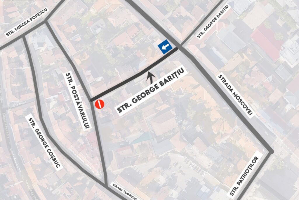 Începând de vineri, 10 octombrie 2025, ora 18:00, circulația pe strada George Barițiu se va desfășura într-un singur sens, dinspre intersecția cu strada Moscovei către intersecția cu Postăvarului. Potrivit reprezentanților municipalității, această modificare are scopul de a fluidiza traficul într-o zonă intens circulată din centrul orașului.