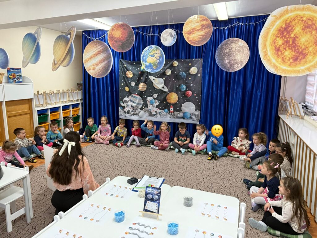 După aceste activități, copiii au aflat mai multe informații despre spațiul cosmic, fiind ghidați de „domnul Astronaut”. În cadrul activității de cunoaștere a mediului, aceștia au descoperit caracteristicile planetelor.