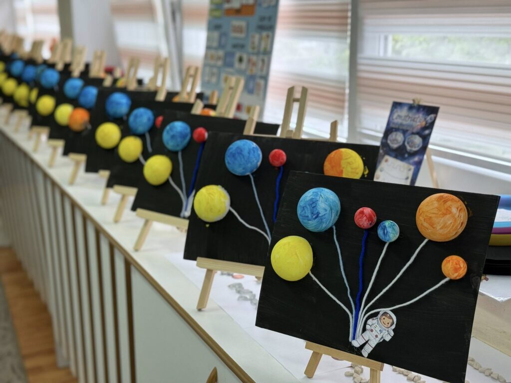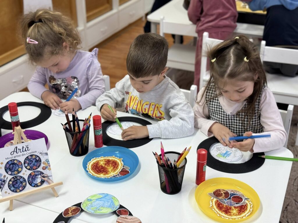 La final, în cadrul activității artistico-plastice „Universul în culori”, fiecare copil și-a pictat propria planetă, folosindu-și imaginația.