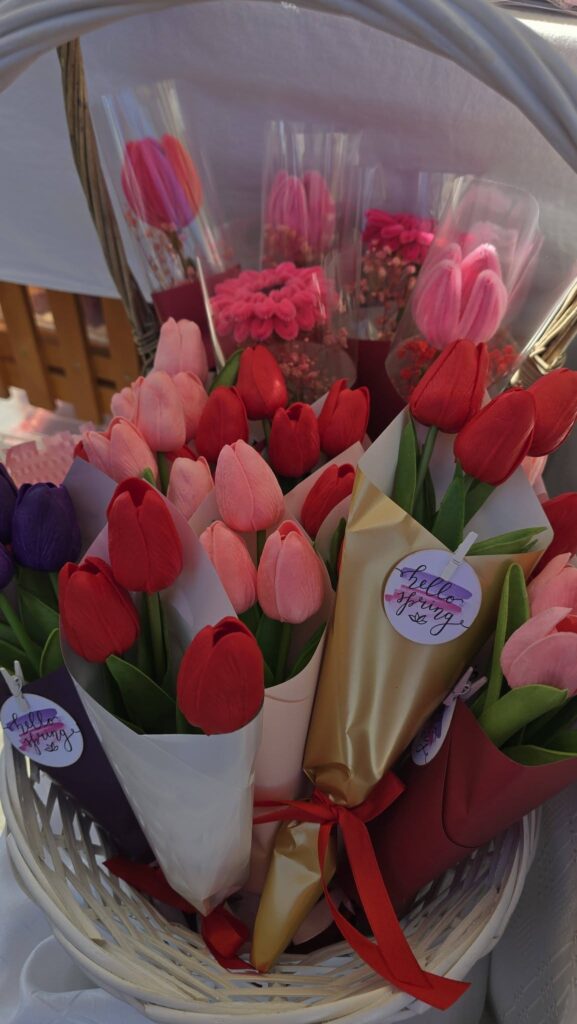 Vizitatorii pot descoperi și produse realizate manual. Printre ele se numără coșuri împletite, obiecte din lemn sculptat, linguri de lemn, ceramică, genți croșetate, haine, semne de carte sau săpunuri parfumate. Meșterii aduc și alte produse handmade.