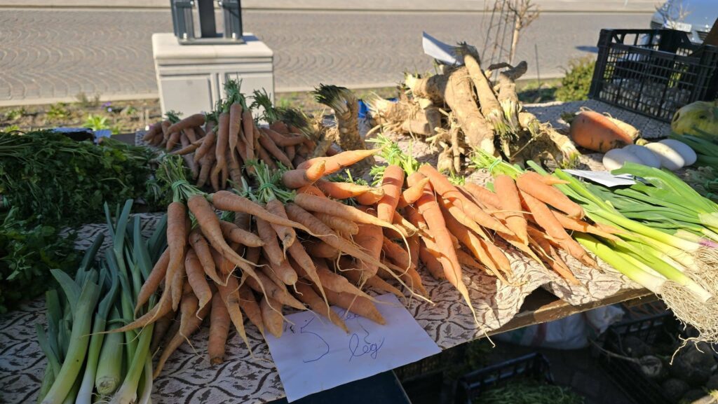 Cei care ajung în Piața Unirii pot cumpăra legume proaspete, precum: pătrunjel, morcovi, varză, țelină, gulii, cartofi sau conopidă. La standuri se găsesc și miere, lavandă, uleiuri de gătit și uleiuri esențiale de șofran sau lavandă.