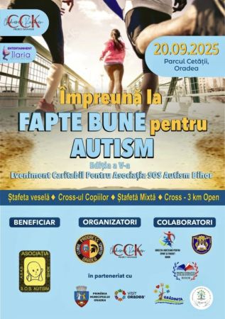 Sâmbătă dimineață, în Parcul Cetății din Oradea se vor întâlni iubitorii de mișcare cu cei ce vor să facă fapte bune. Acolo se va desfășura cea de-a V-a ediție a evenimentului caritabil „Alergăm Împreună la FAPTE BUNE pentru AUTISM”, o acțiune care îmbină sportul cu dorința de a sprijini copiii și familiile care se confruntă cu tulburările din spectrul autist.