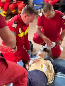 Un element esențial al pregătirii l-au constituit simulările de cazuri practice, realizate pe baza unor scenarii inspirate din situații reale de intervenție. Aceste exerciții au permis participanților să aplice integrat cunoștințele dobândite, să își testeze capacitatea de reacție în condiții de stres și să exerseze luarea deciziilor rapide în calitate de prim și, uneori, unic salvator la locul intervenției.