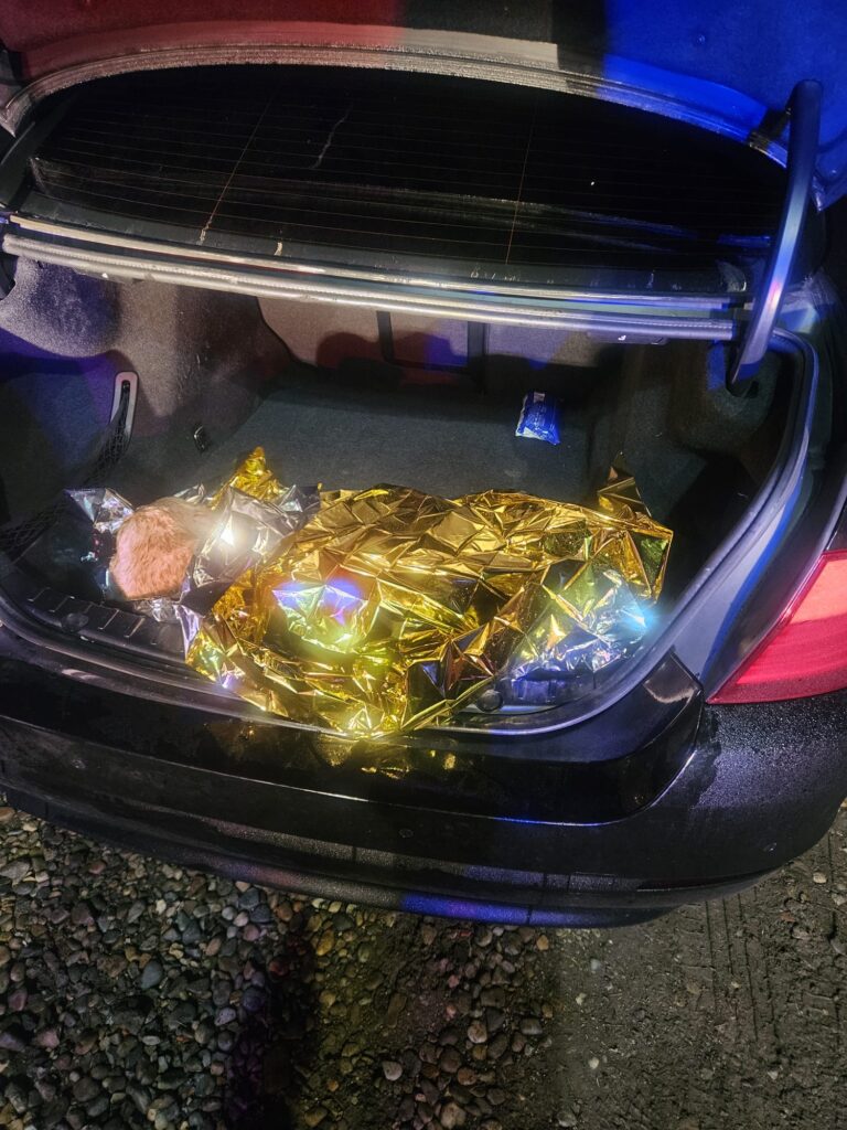 Pompierii l-au învelit într-o folie termică și l-au dat în grijă femeii care a făcut apelul. Aceasta s-a oferit să-l ducă la un cabinet veterinar pentru îngrijiri suplimentare.