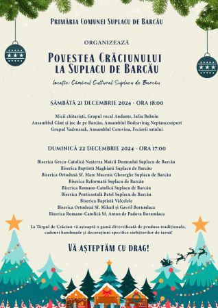„Prin colinde și alte momente speciale, aceste comunități religioase vor aduce în fața publicului mesajul de pace, iubire și speranță al Crăciunului. Vă așteptăm să sărbătorim împreună!”, a spus Alin Popoviciu, primarul comunei Suplacu de Barcău.
