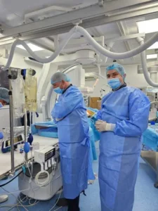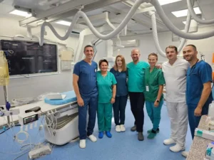 Astfel, în data de 06.09.2024, a avut loc în premieră județeană intervenția de implantare a defibrilatorului cardiac subcutanat. Aceasta s-a desfășurat în sala de electrofiziologie, sub control fluoroscopic, ceea ce presupune efectuarea unei proceduri imagistice prin care se obțin imagini în timp real cu ajutorul razelor X.