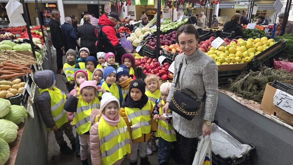 Preşcolarii din grupa mijlocie de la Grădiniţa cu Program Prelungit nr. 53 din Oradea, însoțiți de educatoarele lor Crina Ștrengar și Carmen Șchiopu, au mers vineri la piaţă, într-o vizită menită să îi ajute să înţeleagă cum funcţionează acest spaţiu şi cum trebuie să se comporte acolo.