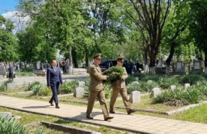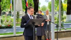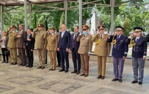 Festivitatea s-a încheiat cu un moment solemn de depunere de coroane de flori la Monumentul Eroilor.