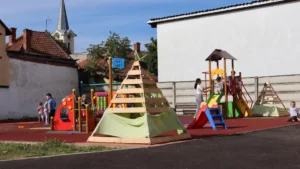 La Grădinița cu program prelungit nr. 34, situată în Oradea în Parcul Petőfi Sándor, nr. 36, s-au realizat lucrări de amenajare a curții, incluzând refacerea asfaltului și a trotuarelor, nivelarea terenului, amenajarea locului de joacă, furnizarea și montarea echipamentelor de joacă și amenajarea zonei verzi.