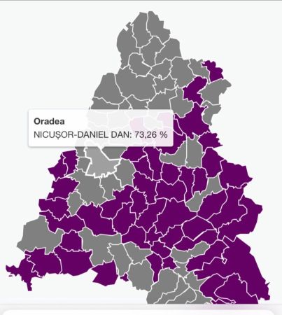 Rezultatele din municipiul Oradea sunt și mai concludente. Aici, Nicușor Dan a obținut un scor de 73, 26% (77.573 de orădeni) confirmând un sprijin important din partea electoratului urban.