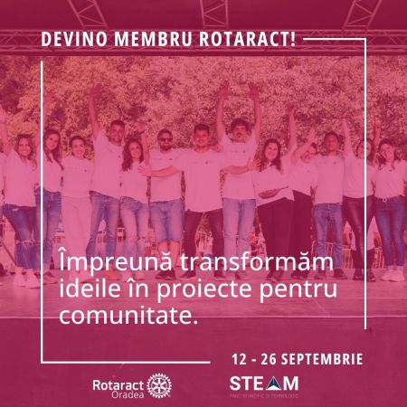Până în 26 septembrie, Rotaract Club Oradea își deschide porțile pentru tinerii cu vârste între 18 și 30 de ani care vor să se implice în viața comunității și să facă parte dintr-o echipă energică și prietenoasă.