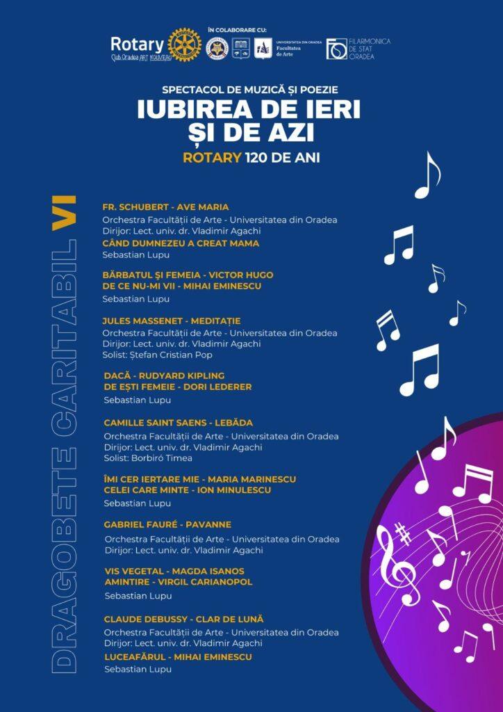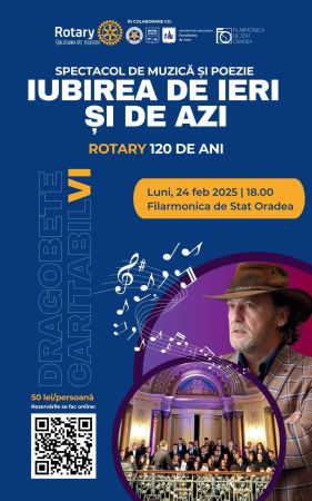 Orădenii sunt invitați să sărbătorească iubirea românește și să fie generoși în același timp. Ei sunt așteptați la spectacolul de muzică și poezie „Iubirea de ieri și de azi” – Dragobete Caritabil, un eveniment de suflet organizat de Rotary Club Oradea Art Nouveau.