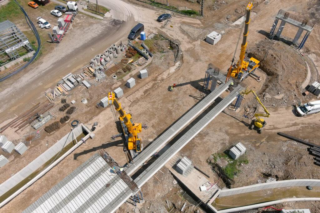 Până în prezent au fost montate 8 din cele 20 grinzi. Lucrările la pasaj au început în 24 februarie 2025, iar stadiul acestora a ajuns la 60%.