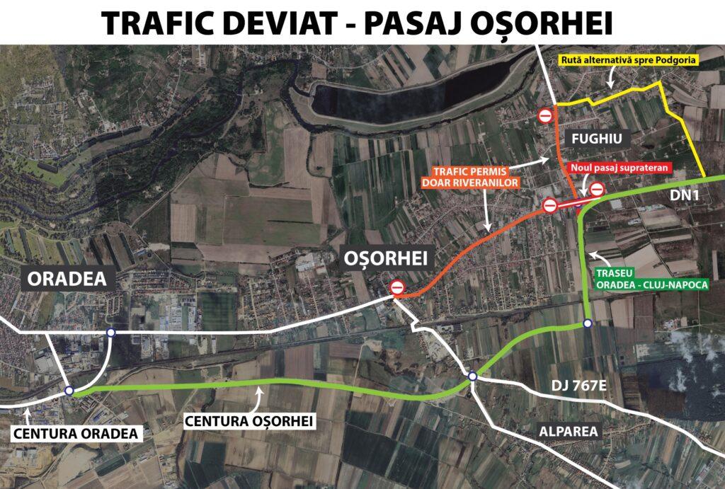 Pe perioada desfășurării lucrărilor, traficul rutier a fost deviat pe Centura Oșorhei și a fost realizată o bretea de legătură între DN1 și Centura Oșorhei.