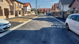Astfel, a fost realizată canalizarea pluvială, iar apoi s-a trecut la amenajarea carosabilului, a trotuarelor și a accesurilor la proprietăți.