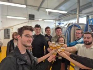 „Am vrut să îmbinam armonios și, în același timp, cu îndrăzneală, tradiția și inovația. Începând din anul 2019, producem bere în unitatea proprie, o clădire nouă și modernă, concepută și construită după cele mai exigente standarde în producția de bere artizanală”, a mai spus Paul Olău. Gazda le-avorbit studenților despre experiența sa de antreprenor și despre accesarea fondurilor europene,investite în construirea acestei efervescente afaceri.