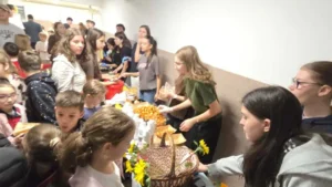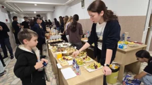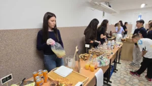 „Eu m-am ocupat de cum arată standurile. La târg domină produsele dulci, dar avem și sandvișuri, cornuri sărate și alte gustări. Le-am pregătit acasă, împreună cu părinții”, a relatat acesta.