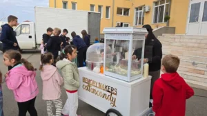 Pentru eveniment, copiii au pregătit acasă, împreună cu părinții, tot felul de prăjituri și dulciuri, pe care le-au vândut la standurile amenajate în curtea și la subsolul școlii. Atmosfera a fost una plăcută și veselă, mai ales datorită sponsorilor care au oferit popcorn, burgeri și vată pe băț pentru toți participanții dornici să-și cumpere.