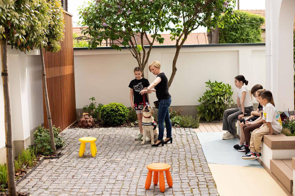 „Este un loc pe care îl iubesc. E în aer liber, înconjurat de natură, flori și un izvor. Aici organizăm ateliere pentru copii – unele chiar pe teme precum bullyingul – la care participă și Adam. Copiii vin, îl mângâie, unii îl hrănesc chiar din palmă. E un progres real pentru cei mai retrași și mai ales pentru cei cărora le este frică de câini”, povestește logopedul orădean.