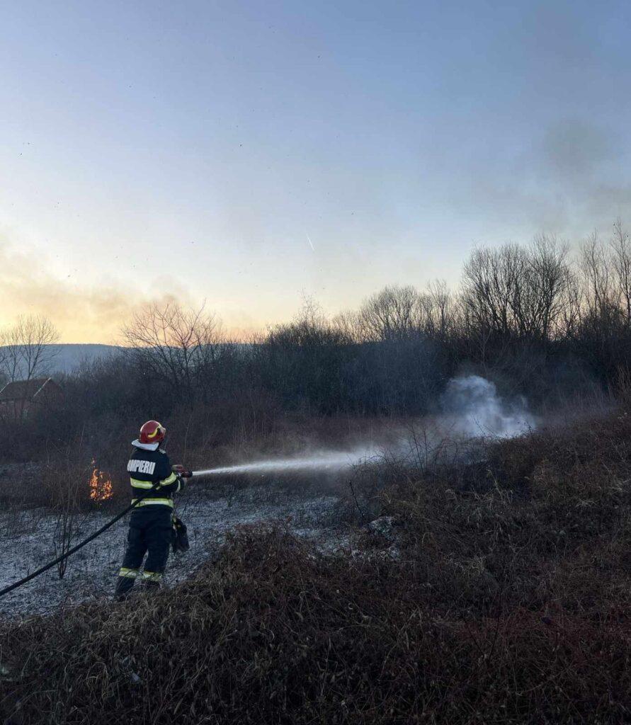 „Pompierii militari din cadrul Secției Beiuș au acționat pentru stingerea unui incendiu care a cuprins vegetația uscată de pe o pajiște împădurită, pe o suprafață de aproximativ 2.5 hectare.