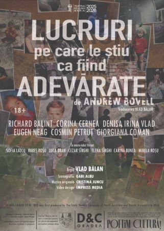 Trupa „Iosif Vulcan” a Teatrului Regina Maria din Oradea joacă prima premieră a noii stagiuni: spectacolul „Lucruri pe care le știu ca fiind adevărate” de Andrew Bovell, în regia lui Vlad Bălan. Premiera va avea loc marți și miercuri, 16 și 17 septembrie, de la ora 19:00, la Sala Transilvania.