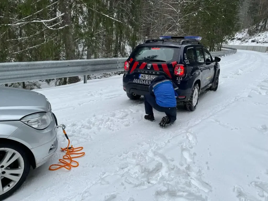 Vineri, 11 aprilie 2025, în jurul ori 16:30, în timp ce se deplasau din direcția Stâna de Vale către Coada Lacului, pe DJ 108 J, la aproximativ 5 km de la ieșirea din stațiune, echipajul de jandarmi montani a identificat un autovehicul înzăpezit pe marginea drumului.