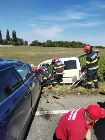 Echipajul de descarcerare a acționat pentru evacuarea bărbatului rămas captiv în autoturismul avariat, a mai precizat Roșca.