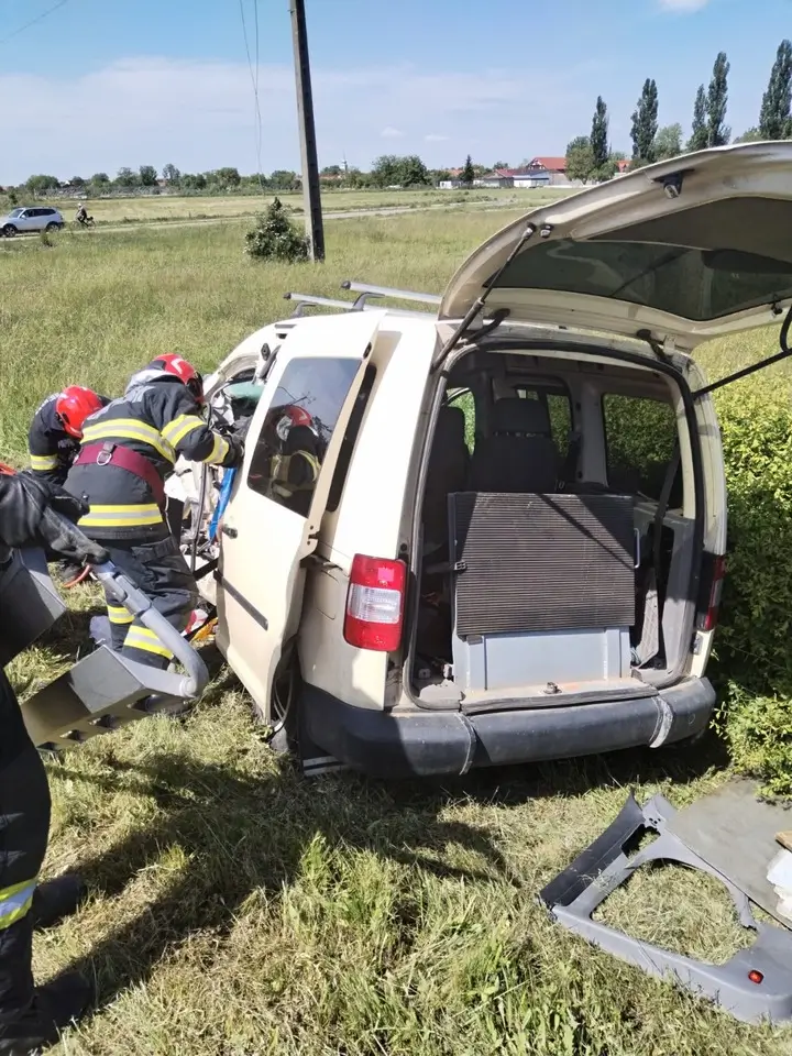 Pompierii bihoreni au intervenit pentru salvarea vieții unui bărbat rămas încarcerat, în urma unui accident rutier produs pe DN19, pe raza localității Tămășeu.