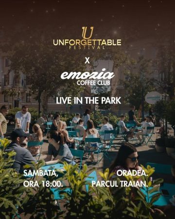 Sâmbătă, între orele 18:00 și 23:00, Emozia Coffee Club găzduiește „Unforgettable in the Park”, un eveniment organizat în colaborare cu Unforgettable Festival. O seară de vară gândită pentru relaxare și muzică bună, în mijlocul naturii.