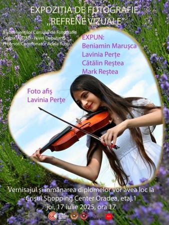 Iubitorii artei fotografice sunt invitați joi, 17 iulie 2025, de la ora 17:00, la Crișul Shopping Center, etajul 1, la vernisajul expoziției de fotografie „Refrene vizuale”. Evenimentul este dedicat absolvenților Cursului de Fotografie – Grupa AR73D, Nivel Debutanți, coordonat de artistul fotograf Adela Rusu.