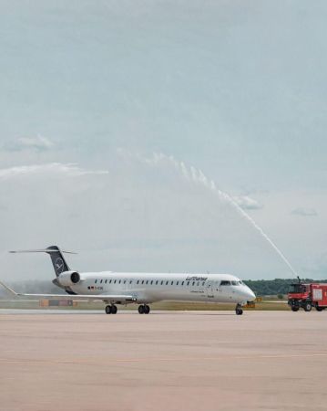 Zbor inaugural Lufthansa pe Aeroportul din Oradea. Ruta Oradea – München, lansată cu tunuri de apă