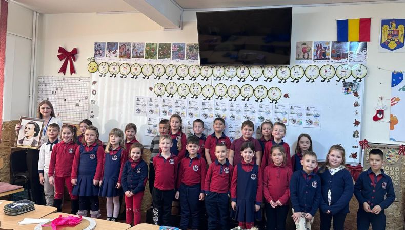 Încă de la primele ore, sala de clasă a fost decorată cu imagini ale poetului, scurte versuri din poeziile sale și lucrări realizate de micuții elevi.